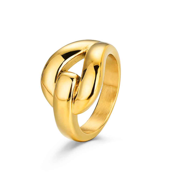 Anillo de acero 316 chapado18 kt cruzado tipo hebilla 13.4 x 3.5 mm waterproof