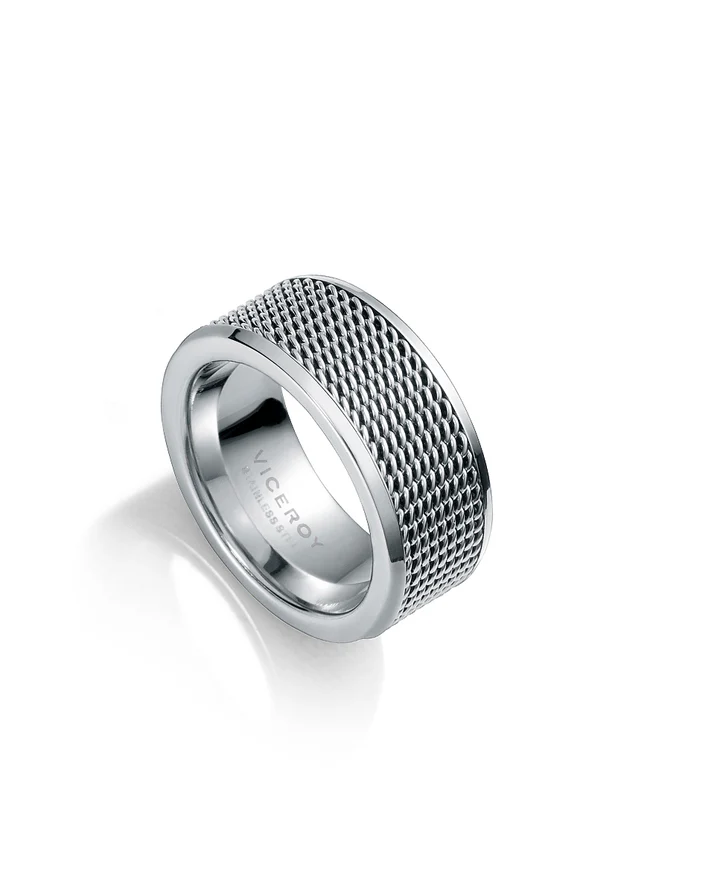Anillo de hombre en acero con malla en el centro VIC