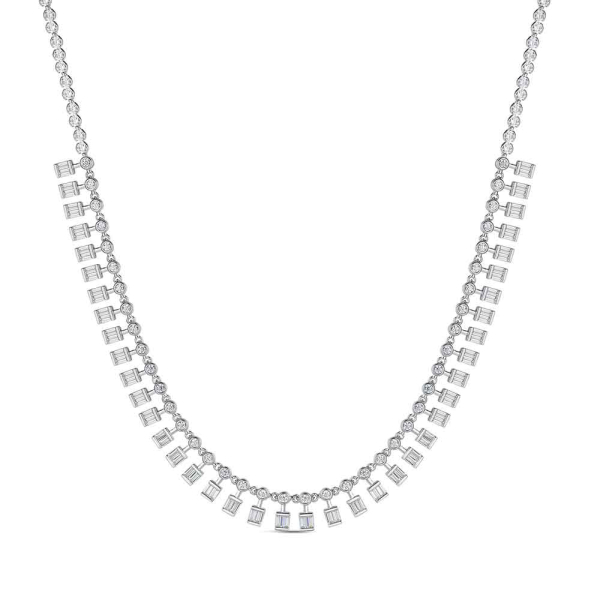 Gargantilla plata rodio chatones de circonita con baguettes colgando 40+5 cm