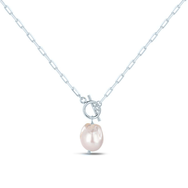 Gargantilla plata rodio perla natural barroca de unos 14 mm y 40 cm de largo