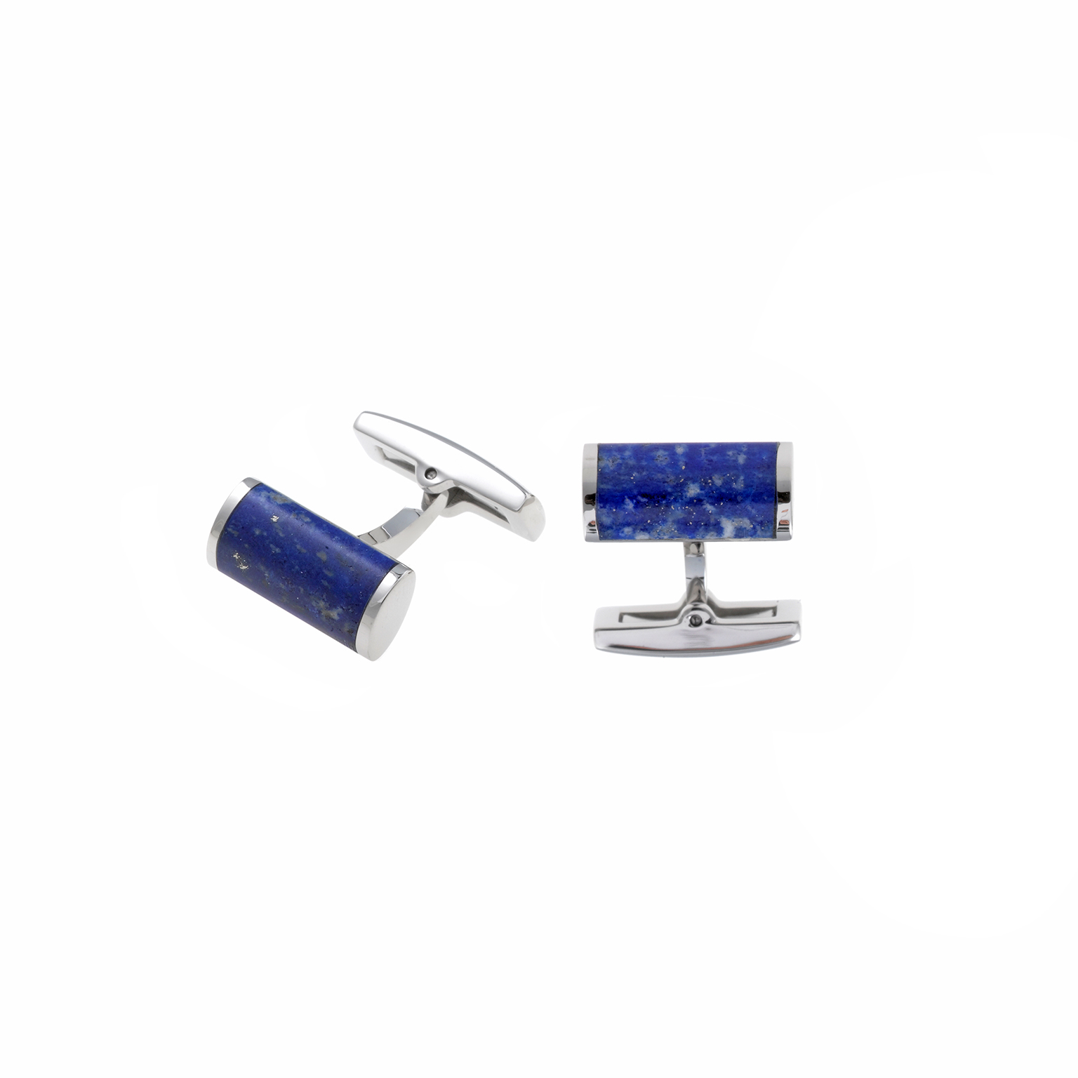 GEMELOS ACERO CHAPADO RODIO CILINDRO LAPISLAZULI NATURAL