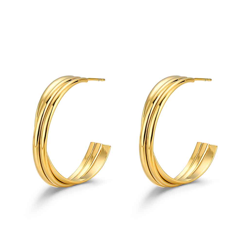 Pendientes de acero 316 chapado 18 kt aro triple hilo de 30 mm cierre presión waterproof