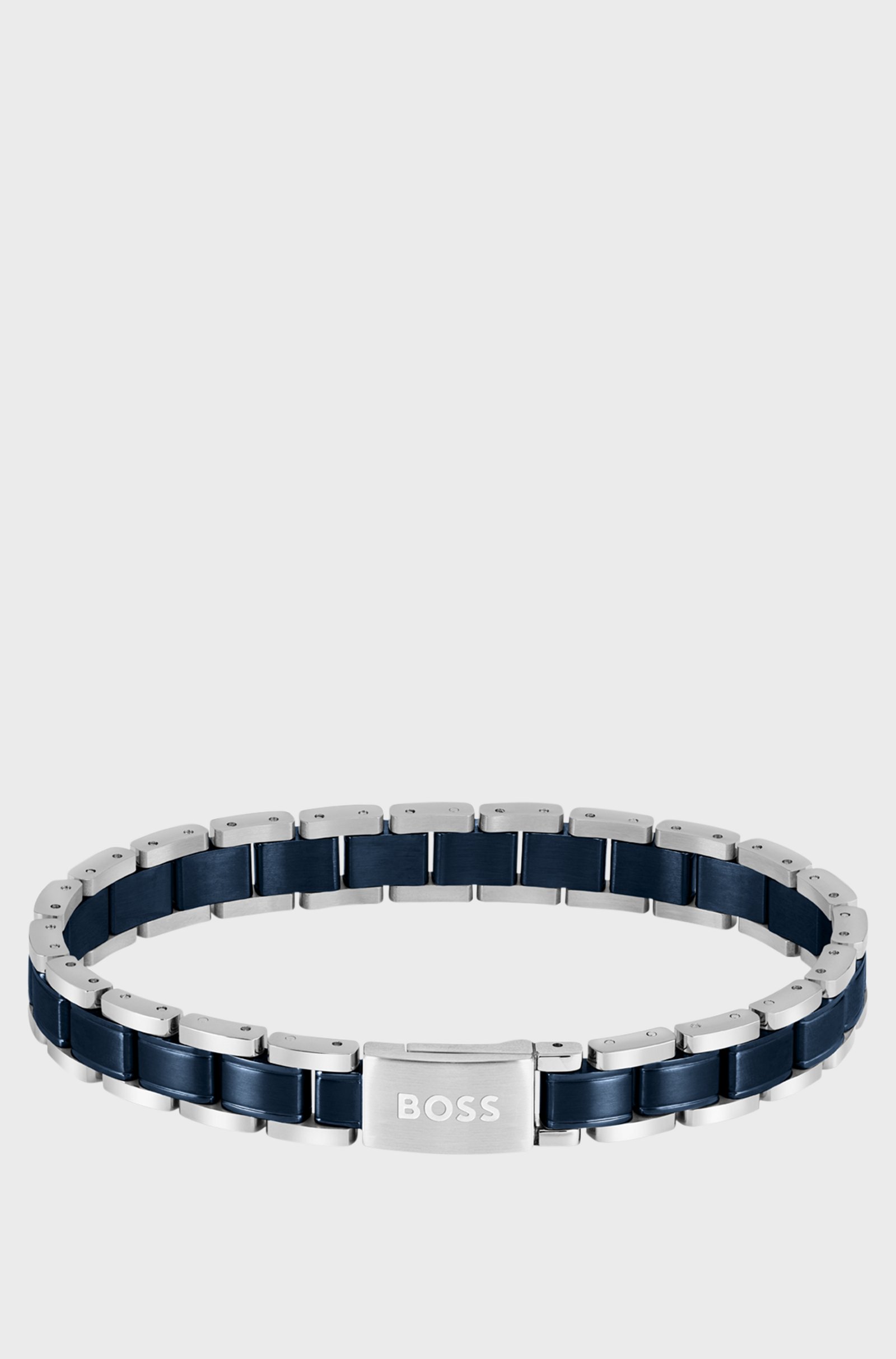 Pulsera hombre en acero plateada y chapada en Azul BOSS