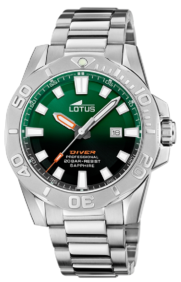 Reloj Lotus Diver analógico para hombre con movimiento de cuarzo, correa de acero inoxidable