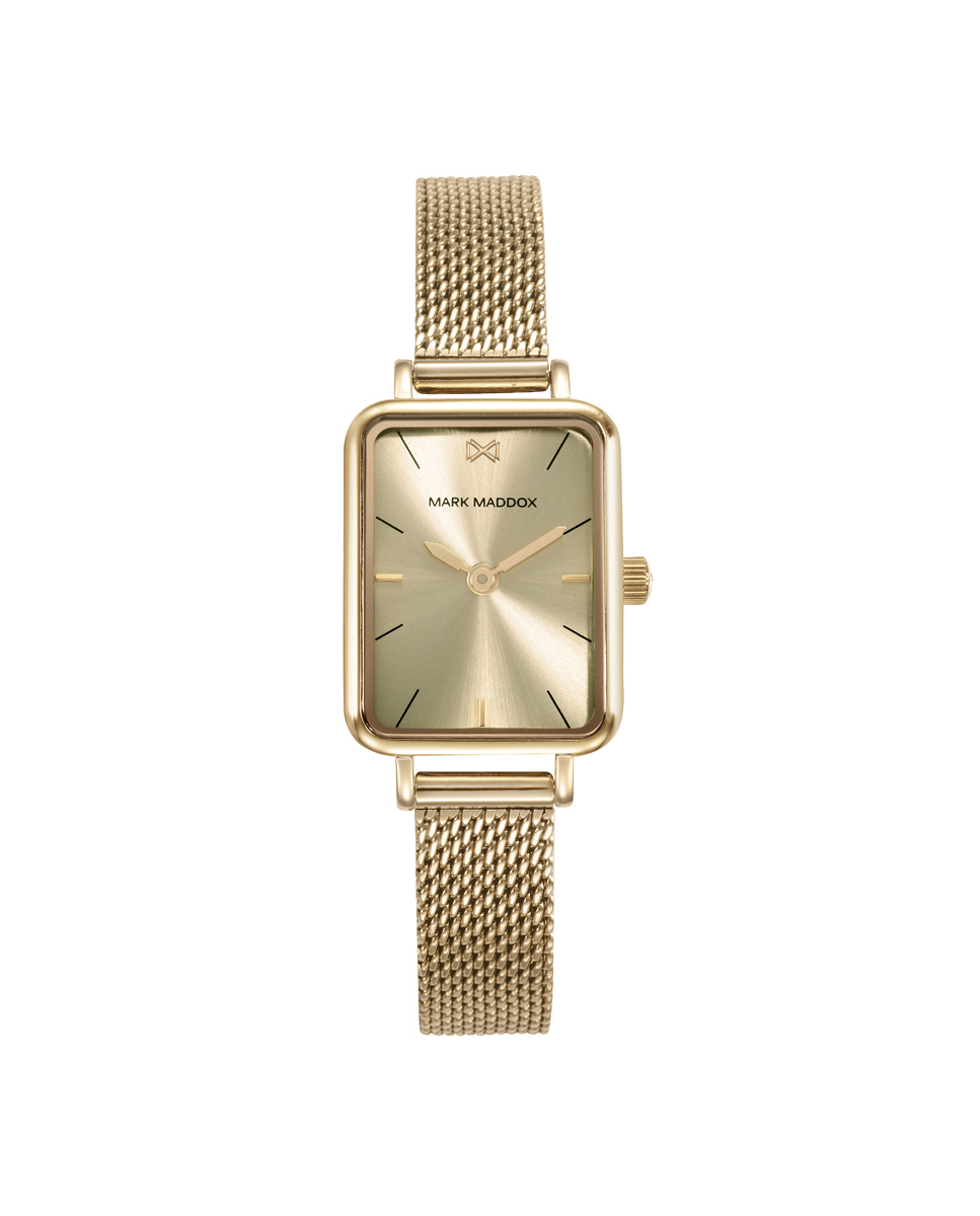 27 Reloj caja de acero Ip dorado y malla milanesa de acero Ip dorado con movimiento cuarzo